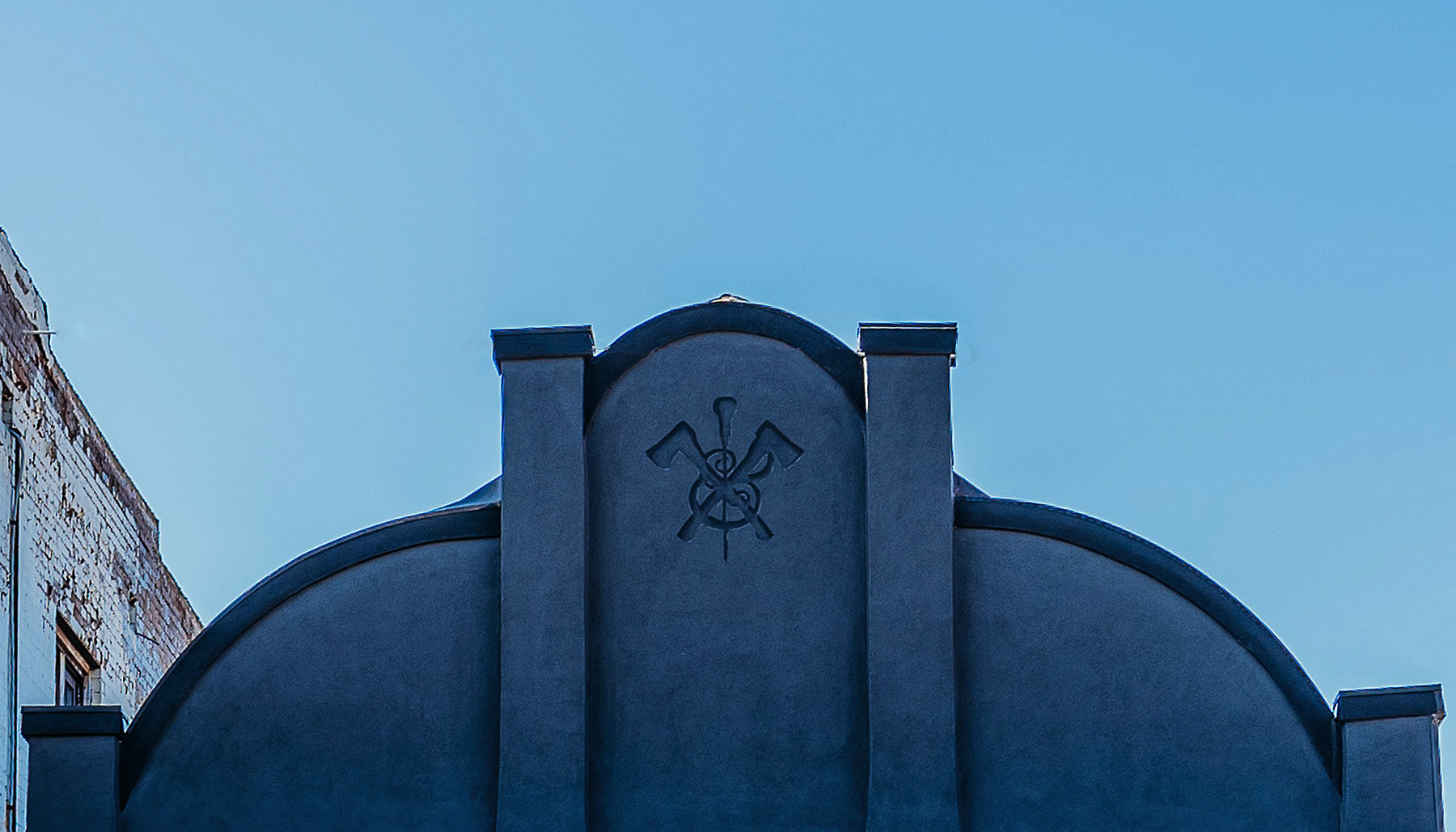 We had this awesome space at the peak of the roof. I conceived of painting a Trompe-l'œil logo (a painting technique that makes things appear dimensional). The goal was to have it appear as if it was carved in granite. Local sign and mural artist @Brushcan did an amazing job of bringing all this work to life. He is shown in the video below painting this piece of the project.