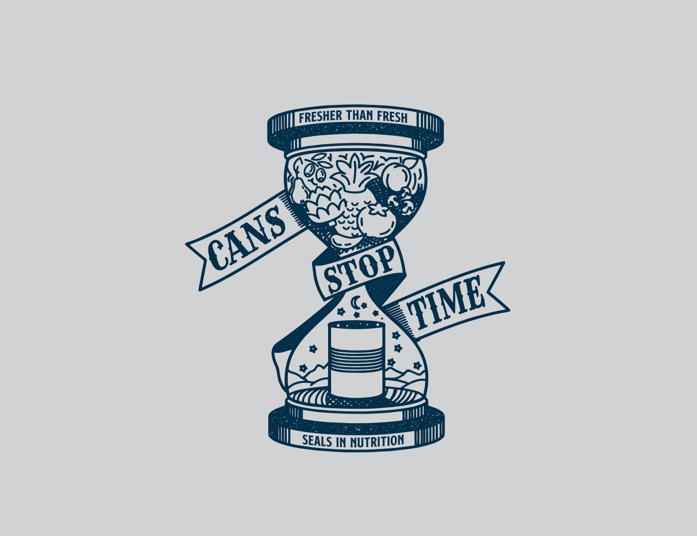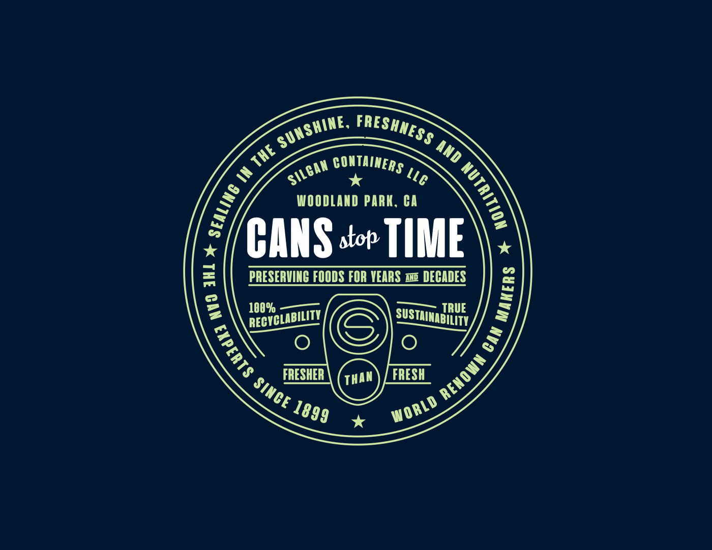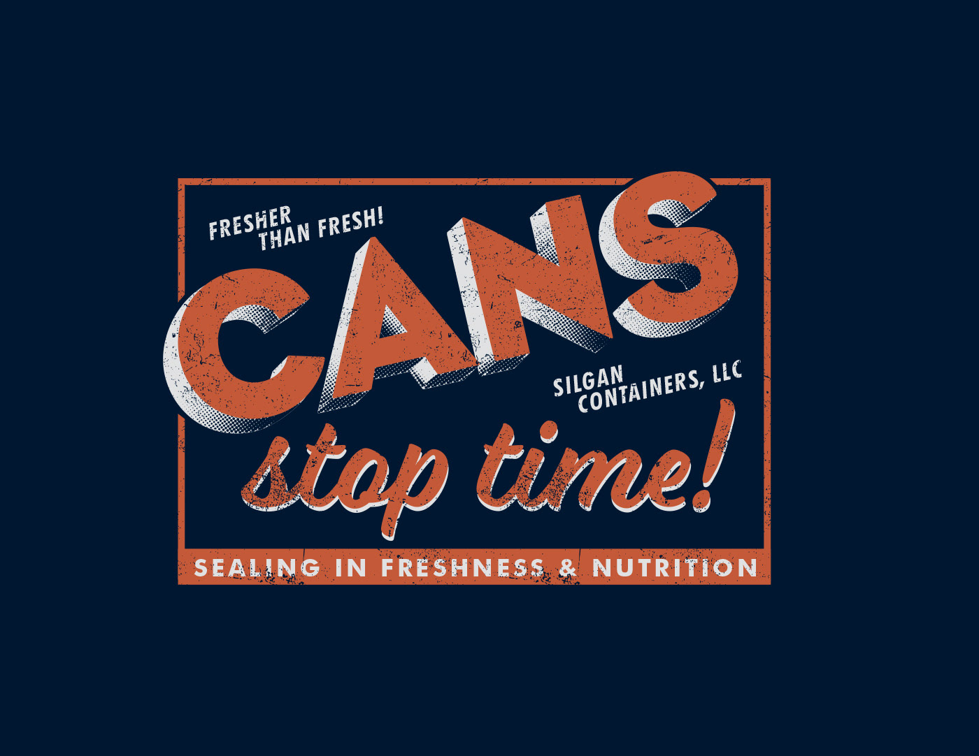 Silgan Containers, the largest provider of metal food packaging in the United States, asked me to create some historical graphics that harkened back to the advent of commercially canned foods to help celebrate the history of the company. Their tagline is "Cans Stop Time," meaning that through the canning process the freshness of the food is preserved in time. I created designs in a typographic styles ranging depression era design aesthetics through 50s modern atomic age styles.
