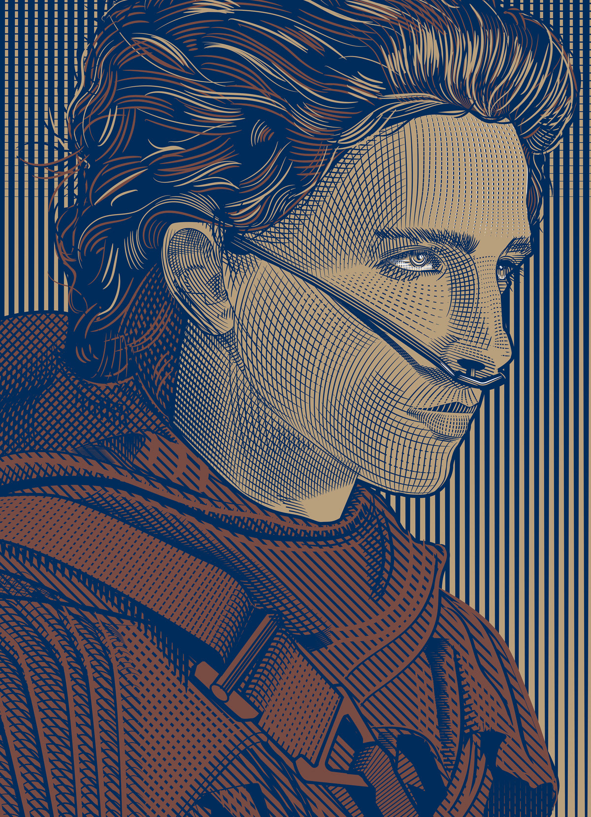 Etching style art of Paul and Leto Atreides (Played by Timothée Chalamet and Oscar Isaac respectively) for the new Denis Villeneuve directed epic Dune movie from Legendary Entertainment. Pure vector art in 3 colors for silk screen printing.