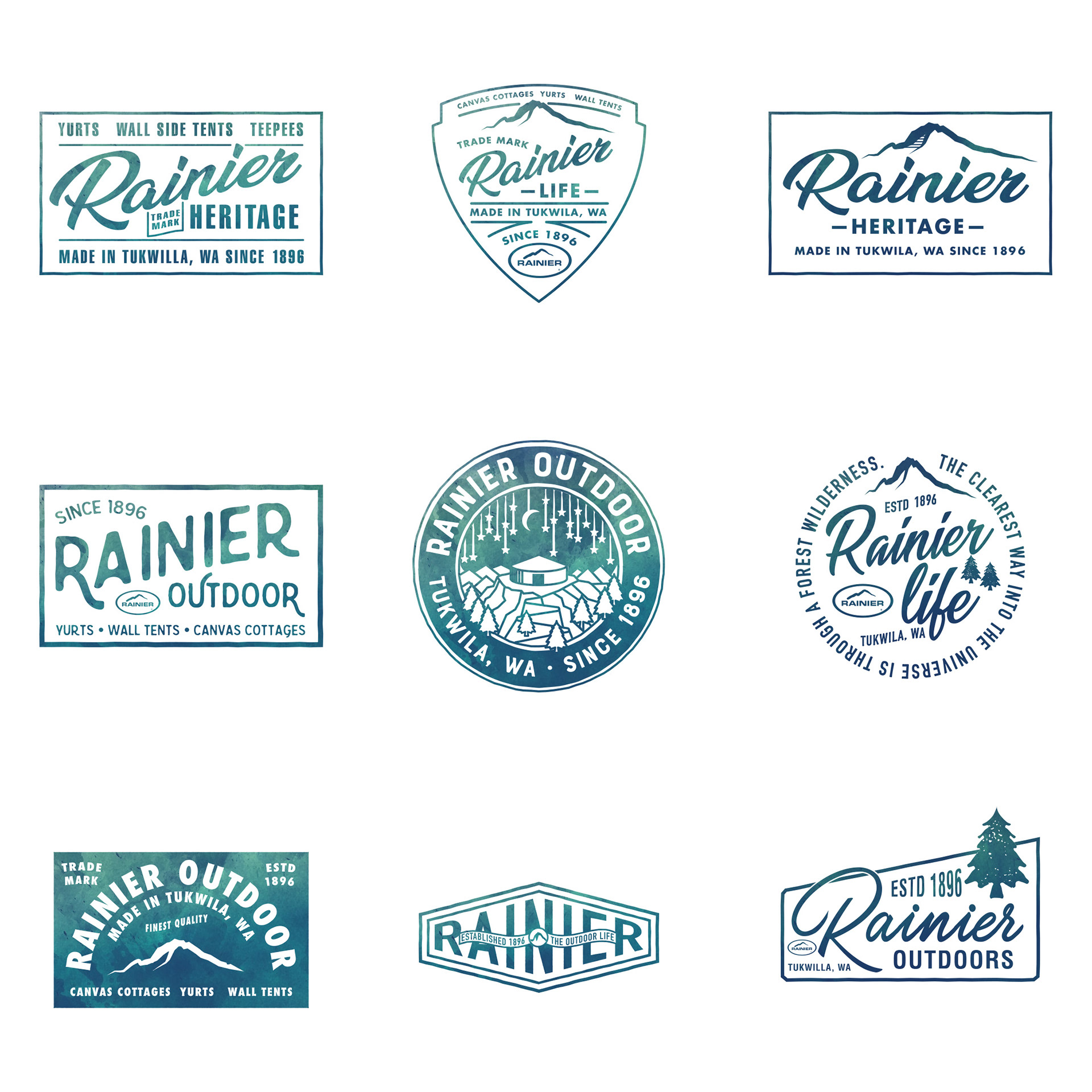 Rainier Outdoor is a division of Rainier Industries that manufactures handcrafted yurts, canvas cottages, canvas tents, and tipis. They have been involved in this business since 1896 making them one of Washington State's oldest continuously operating companies. As a division of a larger organization, they did not have distinctive branding, but in 2018 they came to me to create a new look and feel to help them own a unique brand position in their industry. The divisions all shared a common logo design that featured the main brand oval logo, the word Rainier repeated, and then the product: Rainier Yurts, Rainier Industrial Art, Rainier Tents, etc. Strategic considerations included creating an ownable identity for the division which it could use to market directly to consumers who love the outdoor life while appealing to both the hardcore "off the grid" folks and the more sedate "glamping" crowd.