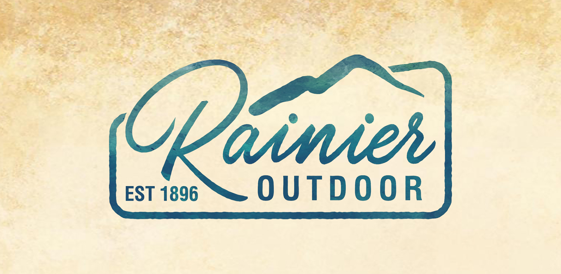 This work was extremely well received but ultimately it was decided that more of the original brand should be incorporated while still maintaining the heritage feel. The name Rainier Outdoor was chosen and the logo below was developed using the mountain from the main Rainier brand oval logo while still incorporating the heritage typography and the watercolor feel developed in the first round.